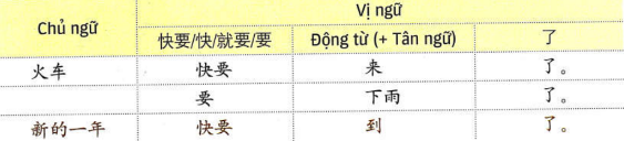 1. Cấu trúc diễn tả trạng thái của hành động “要······了 yào······le”: Sắp…….rồi