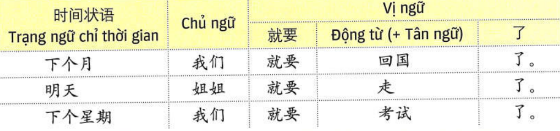 Nếu câu có trạng ngữ chỉ thời gian thì ta chỉ dùng “就要······了 jiù yào······le”